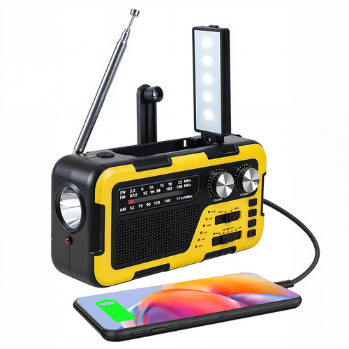 휴대용 태양열 라디오 핸드 크랭크 야외 비상 SOS 라디오 FM AM 효도 라디오 대용량 LED 조명 블루투스 스피커 강력한 조명 손전등 지원 TF 카드 다기능 스피커 MP3 안테, 노란색