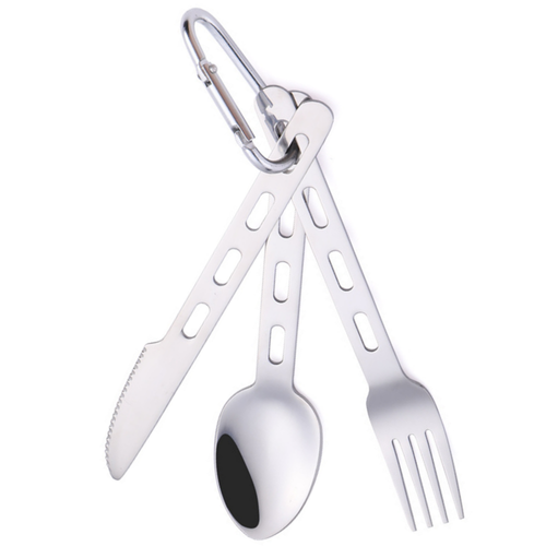 캠핑용 수저세트(숟가락,포크,나이프,카라비너), 1세트