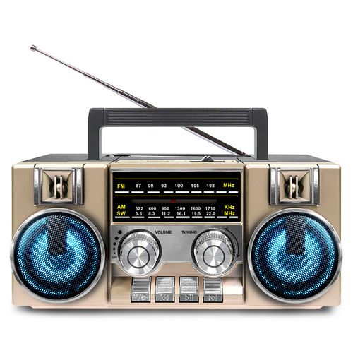 코비 레트로 아날로그 다이얼 FM 라디오 블루투스 스피커, CRF-55B, 골드