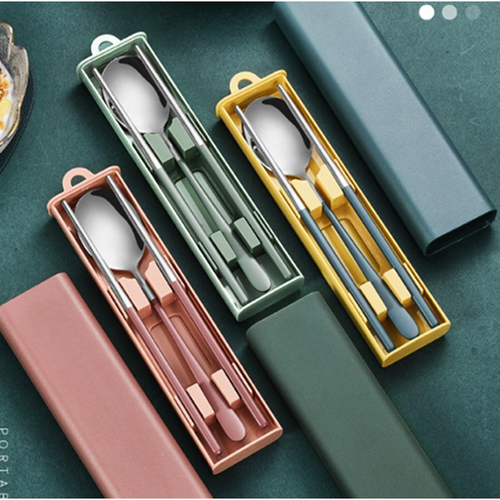 재(jae) 휴대용 스테인리스 수저 세트, 수저 포크 세트, 그린, 1세트, 수저포크세트