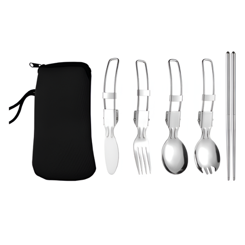 보다모가 야외용 캠핑 올스텐 커트러리 5종 + 파우치 세트, 블랙(파우치), 1세트