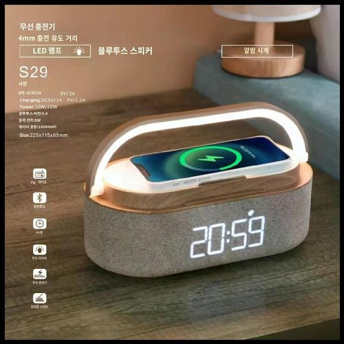 무선충전기 블루투스 스피커 배터리 지원 15W 모닝콜 독서등 야간조명 라디오기능 생일선물