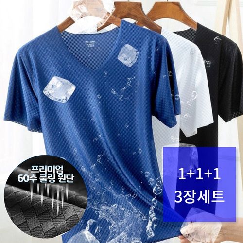 반하다mall 1+1+1 시원한 심리스 쿨 반팔티셔츠 무봉제 프리미엄 브이넥 3P 무배