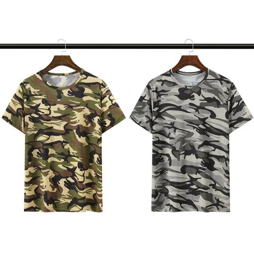 인디오 1+1 남성용 빅사이즈 밀리터리 카모플라쥬 실크아이스 쿨링 스판 기능성 라운드 반팔티셔츠 NCH7039