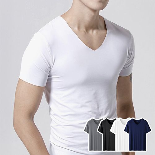 스포코지 남자 반팔티 심리스 무지 V넥 반팔 쿨링 머슬핏 남성 티셔츠 이너 런닝