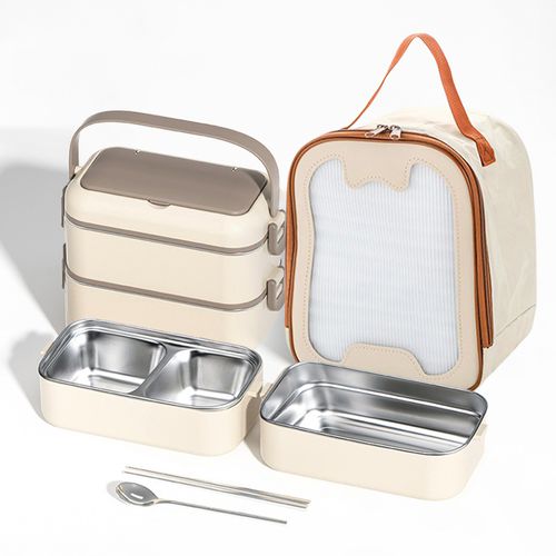 산뜻하니 사각 보온 도시락 직장인 304 스테인리스 대용량 2단 스텐도시락통, 1개, 카키