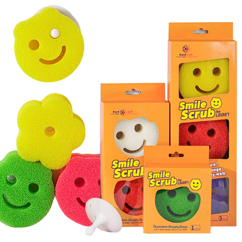 정품 스마일스크럽 수세미 흡착홀더 포함 랜덤발송, 1개, 3개입