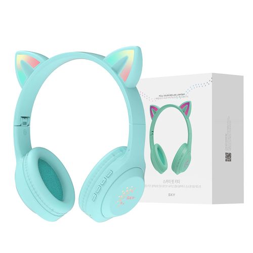SKY 아동용 핏 키티 휴대용 유무선 겸용 블루투스 헤드셋, 페퍼민트 그린, IM-H26