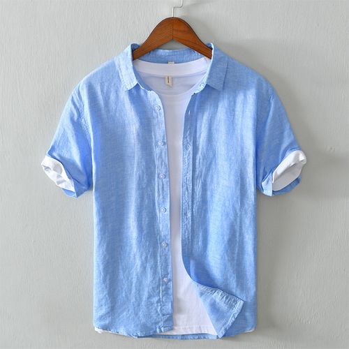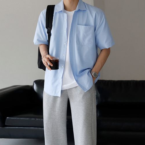 순색 디자인 비즈니스 레저 스타일 조화 셔츠 면마 소재 제품 면마 소재 피부 통기성 쾌적 착용감 여름 시원 넥 라인 반팔 디자인 세련 연출 정장 분위기 다양한 장소 활용 실용적