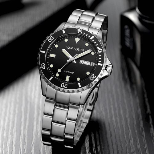 반폴츠 프리미어 스틸 남자 남성 메탈 손목 시계 사파이어 글라스 41mm