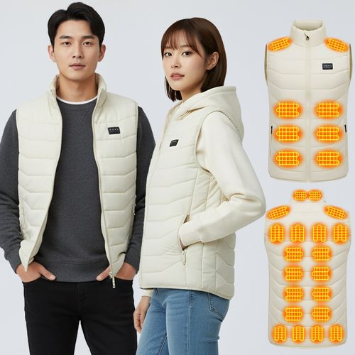 Yunivo 경량 발열 조끼 방풍 방수 2구역 독립가열 3단 온도조절 물세탁 가능 원적외선 항온 발열 방한 보온 패딩조끼