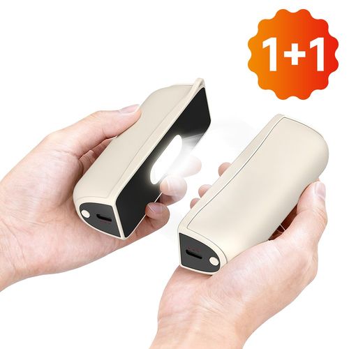 WOWWAY 충전식 손난로 보조배터리10000mAh 듀얼 자석 마그네틱+온도3단조절+손전등 전자 핫팩, 베이지