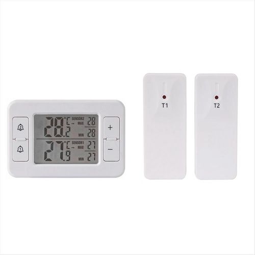 무선 변속기 온도계 LCD 디지털 경보 냉장고 냉동고 전자 온도 센서 실내 실외