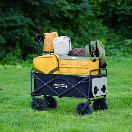 영우드 다용도 웨건 접이식 아웃도어 캠핑카트 사이드 테이블 폴딩 카트, 1개, 블랙