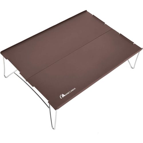 MOON LENCE 초경량 미니 캠핑 테이블 백패킹 접이식테이블 접이식 다용도 솔캠테이블 침대 캠핑 피크닉 파티 등산 차박 1인용 두랄루민 수납가방포함, 갈색