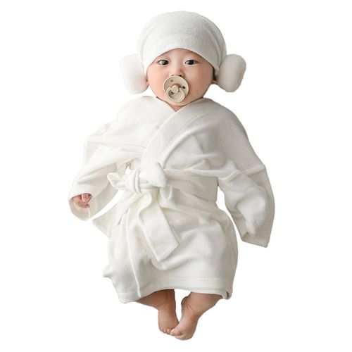 유아용 소프트 대나무 밤부 타올 가운 + 양머리 + 허리끈 세트 XS, 화이트, 1세트