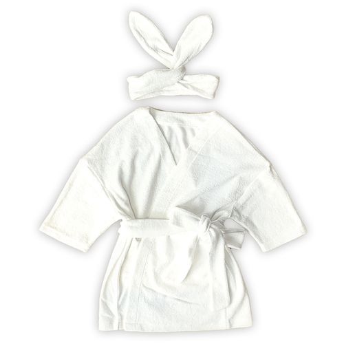 유아용 소프트 대나무 밤부 타올 가운 + 양머리 + 허리끈 세트 S, 화이트, 1세트