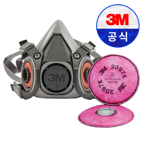 3M 6200+2097K (1set / 방진특급) 석면 독성분진 P100방진 방독마스크 반면양구형 필터 정화통 결합/교체식