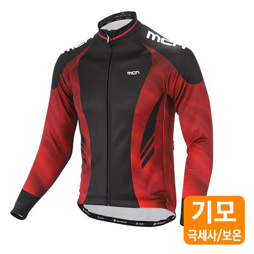 MCN 메탈릭 레드 기모 긴팔져지 환절기 자전거 의류 기능성 사이클 상의 스판기모극세사 자외선차단 항균속건 고기능성