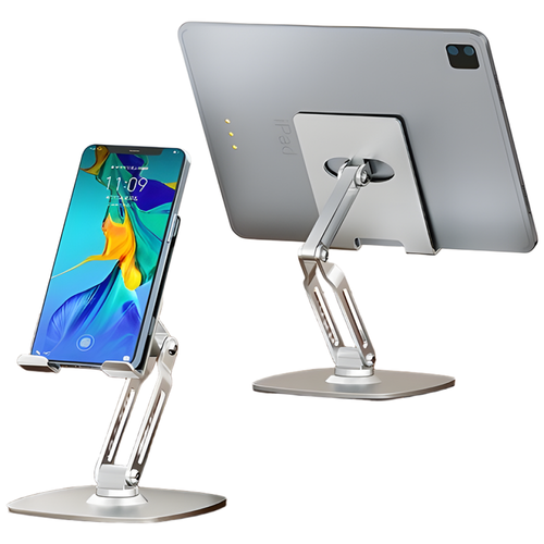 오브렌 360도 회전 태블릿 휴대폰 거치대 접이식 휴대용 높이조절, 실버, 접이식 스탠드, 1개