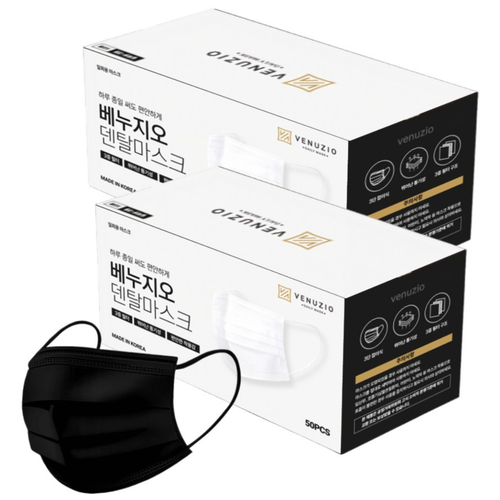 베누지오 숨쉬기 편한 비말차단 국산 덴탈마스크 대형, 블랙, 2개, 50매