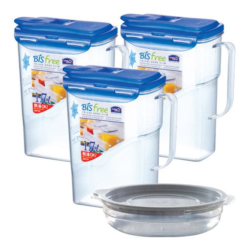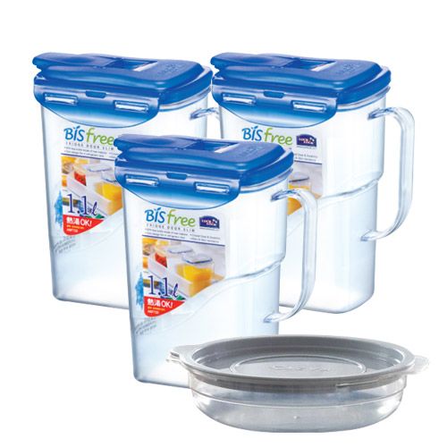 락앤락 비스프리 손잡이 물병 3개 +[가쯔 전자렌지 용기] 세트 냉장고 물통 1리터 2L 카페/가정용/업소용 플라스틱