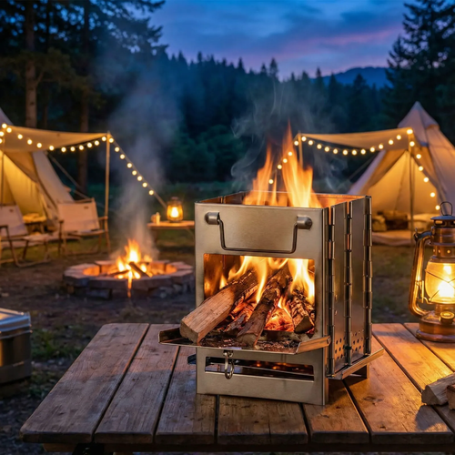 간편 접이식 사각 스텐 화로대 휴대용 난로 야외용 화목난로 불멍 캠핑용, 1개