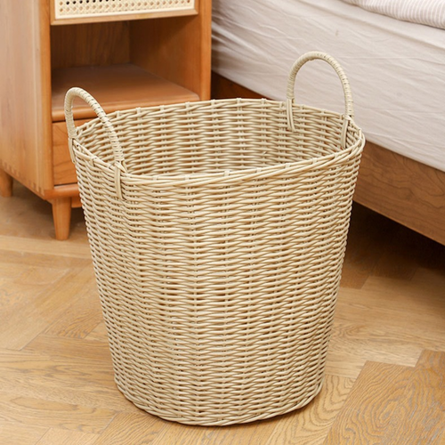다용도 PP소재 라탄 빨래 바구니, 베이지