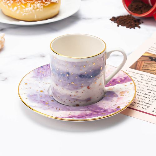 [트리니체] PORLAND 포랜드 코스모스 도자기 에스프레소 커피잔 세트 90cc, 1세트, 퍼플(패턴07)