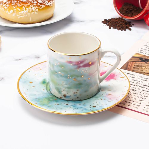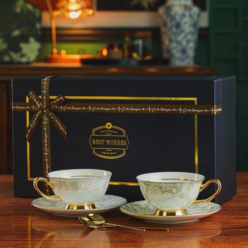 커피잔 세트 고급스러운 찻잔 선물포장 세련된 집들이선물 신혼부부 가벼운 럭셔리 2p 도자기, 2개, 그린
