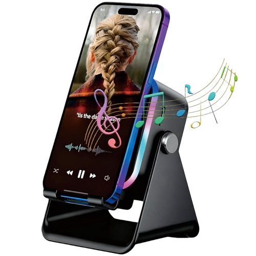 인덕션 스피커, 혁신적인 테크 무선 스피커 스탠드, 휴대폰 스탠드 홀더용, 블루투스 오디오 앰프 도크 포함, 아이폰/삼성/아이패드용 (블랙, 스퀘어)