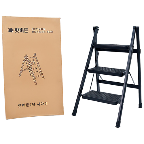 핫버튼 튼튼한 접이식 스텝 스툴 사다리, 블랙