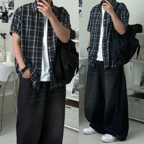 르위 린넨 반팔 셔츠 포켓 체크 오버핏 남방 시어서커 남녀공용