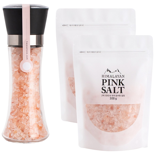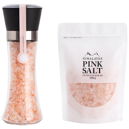 화산수천일염 히말라야 핑크솔트 그라인더200g+굵은 핑크소금300g 세트