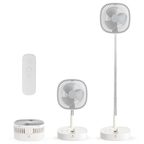 휴대용 받침대 선풍기 - 접이식 스탠딩 책상 선풍기, 7200Mah 충전식 배터리 사용, 가정용 주방 야외 캠핑용 리모컨 텔레스코픽 4단 정숙 타이머 (그레이)