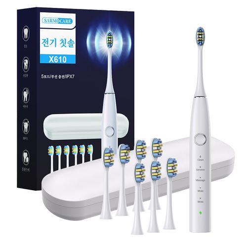 음파전동칫솔 초음파 전동칫솔 스마트 음파 전동칫솔 본체 전동칫솔 파워화이트닝 전동칫솔 전동칫솔 리필브러쉬 6개, 여행가방