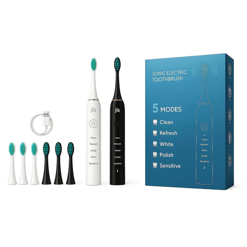 JLS 음파 전동 칫솔 + 칫솔모4개, 블랙+화이트, 2세트, M1