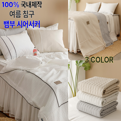 [국내산] 베딩조이 여름 뱀부시어서커 세트 [차렵이불 SS/Q]+[누빔패드 SS/Q]+[베개커버50X70]