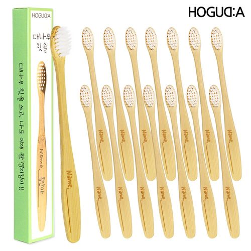 호구다 호호 마이네임 어린이 대나무 칫솔, 화이트, 15개입, 1개