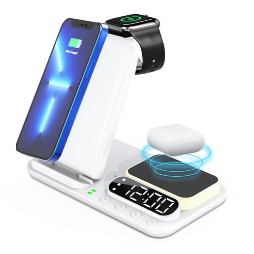 해브유 5in1 고속 무선충전기 핸드폰 애플워치 이어폰 호환 알람시계 무드등 접이식 거치대, 1개, 화이트