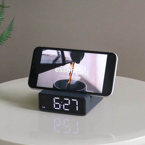 무아스 15W 거치형 미니 스퀘어 무선충전 알람시계