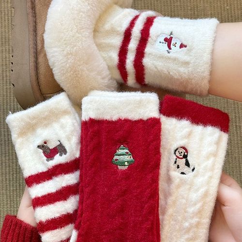 JINYOUQIAN 크리스마스 양말 중목양말 가을 양말 크리스마스선물 크리스마스양말장식 5쌍