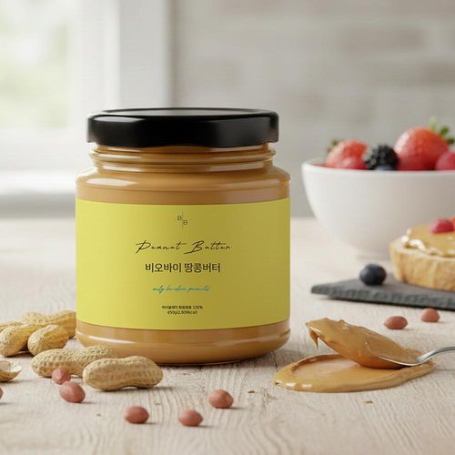 비오바이 국내제조 무가당 땅콩버터 450g 피넛버터 유리병