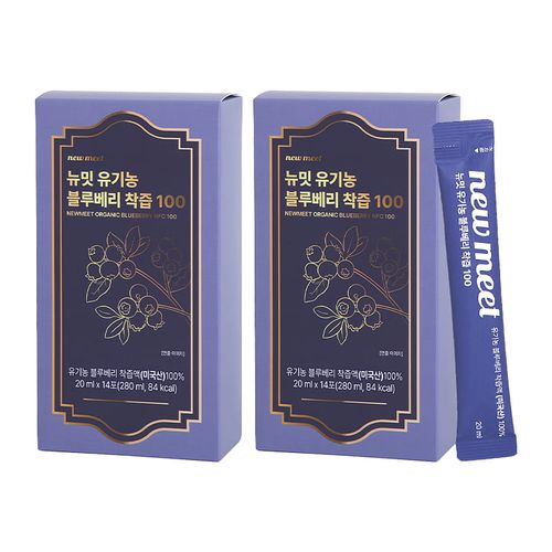 뉴밋 유기농 블루베리즙 100% NFC 생착즙 생과 블루베리주스 쥬스 2박스, 2개, 280ml