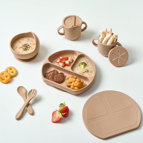 어텀31 유아 실리콘 식기 올인원 세트, 1세트, 흡착식판+흡착볼+컵+스푼+포크, 브라운