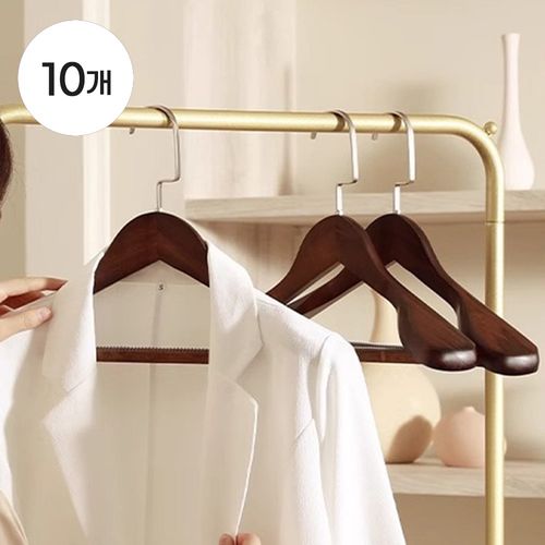 레트로 와이드 고급 원목 정장 옷걸이 슈트 코트 셔츠 패딩 바지 10개 5시전 당일발송, 10개, 월넛
