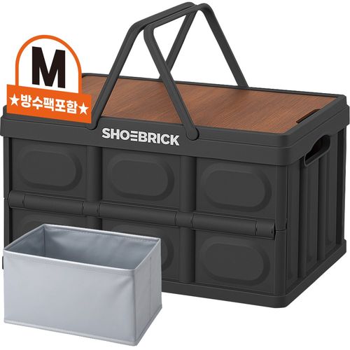 슈브릭 멀티 폴딩박스 손잡이형+우드 캠핑 테이블 상판+전용 방수팩 구성, 트렁크 정리함 KS4002