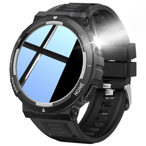 스마트워치, 손전등 LED 시계, 30m 방수, 멀티미디어 메시지 뷰어, 피트니스 만보계, 스포츠 스마트워치, 날씨 모니터, 5cm, 1.53인치 스포츠 시계, 남성용, Black+silver, 5cm, 블루투스