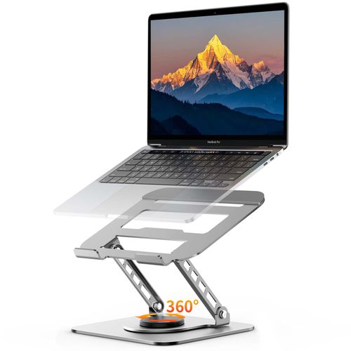 세미 360도 회전 노트북 거치대 높이 조절 각도 조절 미끄럼 방지 탄소강 접이식 컴퓨터 거치대 휴대용 노트북 스탠드, 은색