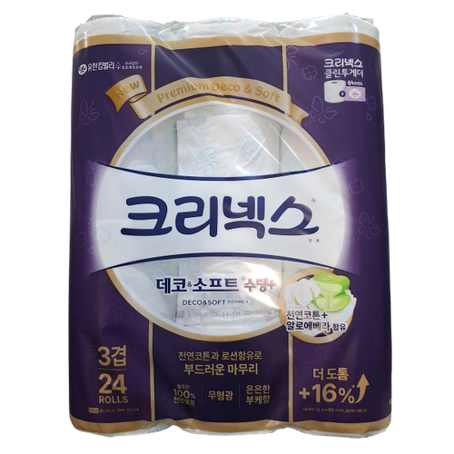 크리넥스 데코 앤 소프트 수딩플러스 천연펄프 3겹 고급롤화장지